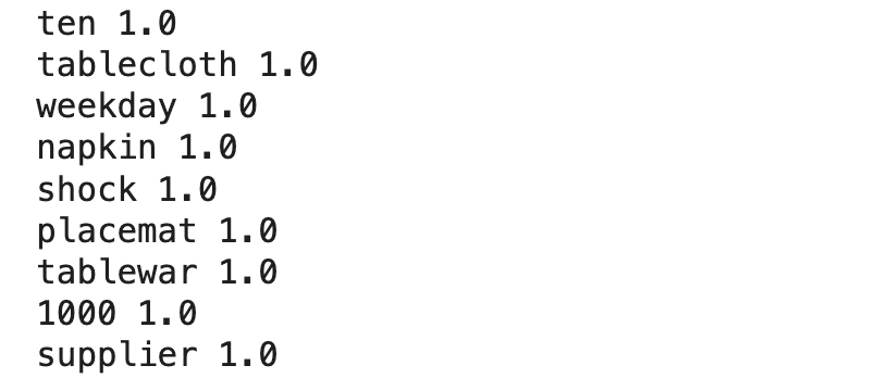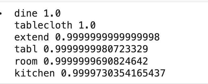• 👎 - the negative: spurious terms like ‘ten’ likely occurs in dining room descriptions “seats ten” - but is this term really related to dining room tables?