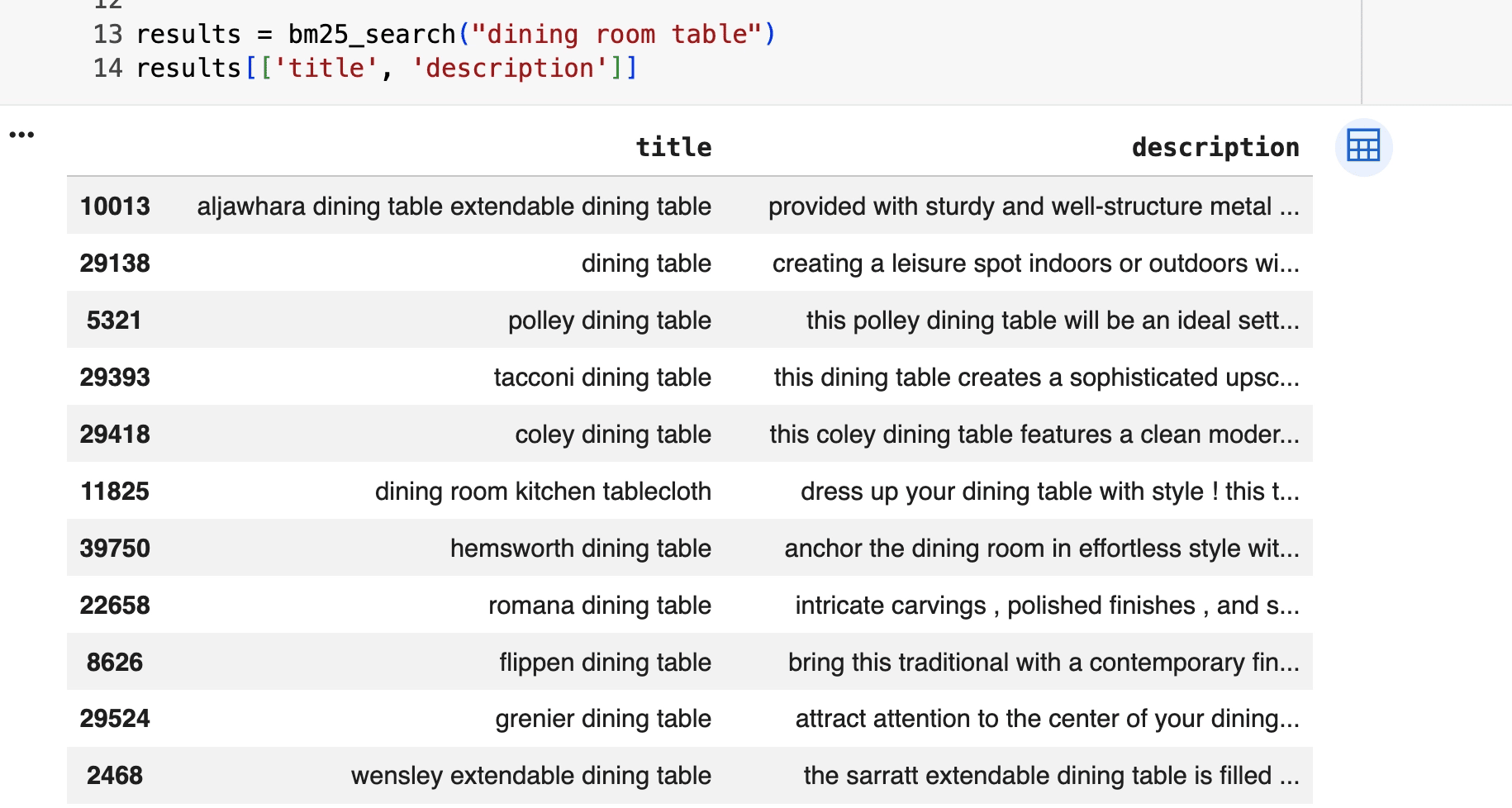 For example, from this semantic knowledge graph notebook, we retrieve some initial results for a “dining room table” query